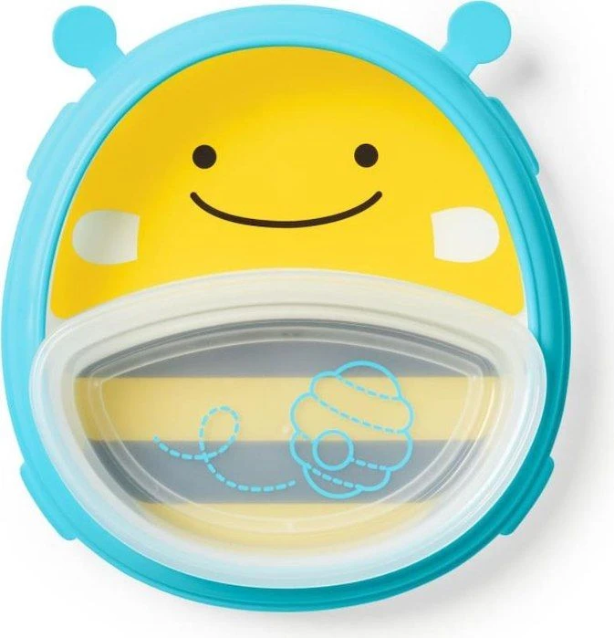 Cet ensemble assiette + bol accompagnera votre petit tout au long de son repas. Ses bords surélevés pratiques permettent de bien ramasser les aliments sans en mettre partout et la couche antidérapante empêche l’assiette de glisser.