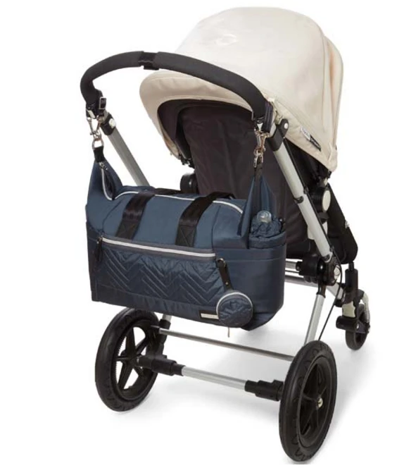 Avec ses nombreux rangements et sa grande poche vous pourrez emporter tous les essentiels pour vous et votre petit lors de vos déplacements. Pratique, le set contient 2 attaches poussettes pour le suspendre. La poche isotherme permet de garder les aliments ou boissons à bonne température. Le matelas à langer et la pochette linge humide seront essentiels lors de vos balades.