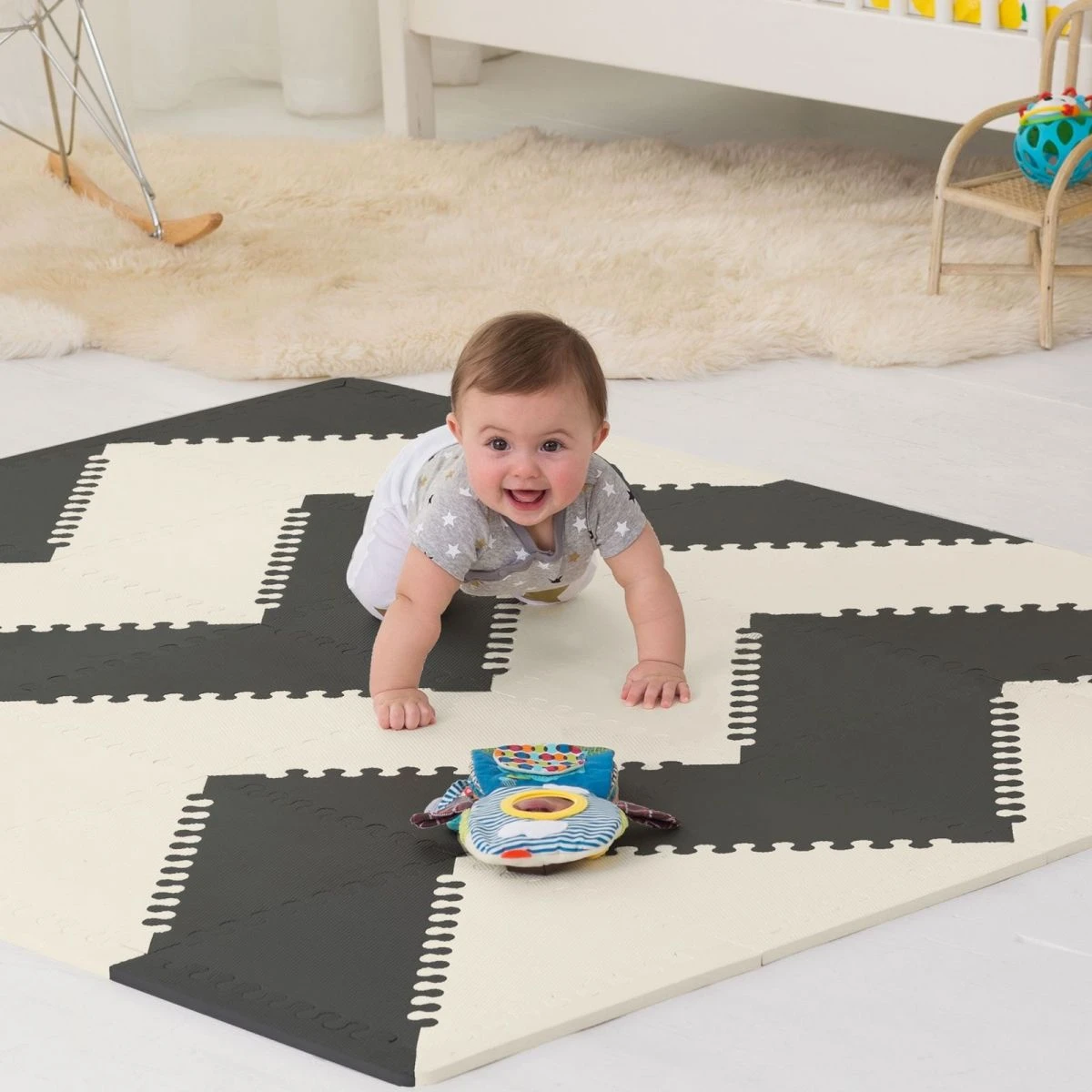 Ce tapis innovant s’assemble d’innombrables façons pour offrir aux bouts de chou un espace d’éveil confortable, tout en habillant le sol de la chambre ou du salon avec de jolis motifs.